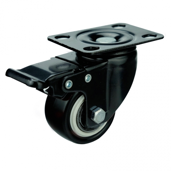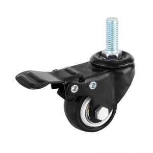 Bánh xe di chuyển bằng giá đỡ điện di nhẹ bằng nhựa PVC đen, theo nghĩa đen có nghĩa là giá đỡ bằng thép dập và định hình được sơn đen bằng quy trình điện di. Mặt bánh xe được làm bằng vật liệu PVC đen bọc lõi bánh xe bằng vật liệu PP màu trắng, kết hợp với ổ trục bi đôi và quay trơn tru. Thích hợp cho mọi loại đồ nội thất, kệ, xe đẩy, v.v.