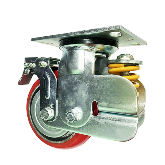 Bánh xe đẩy lò xo đôi lõi gang PU cứng giảm xóc