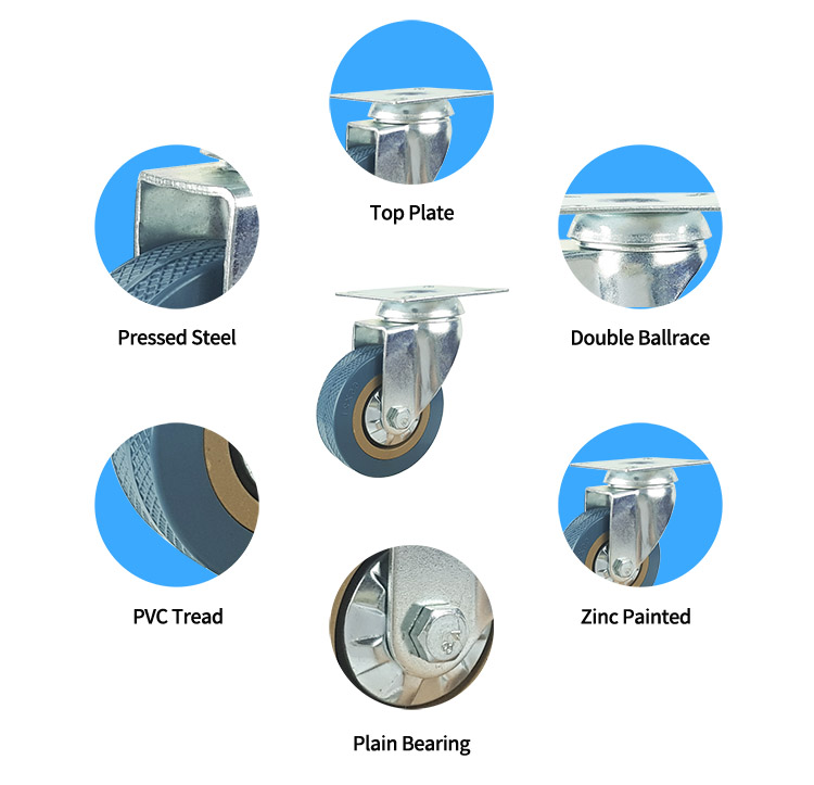 Đây là bánh xe cao su màu xám xoay một tấm trên cùng/bánh xe PVC màu xám cần 4 vít để cố định.